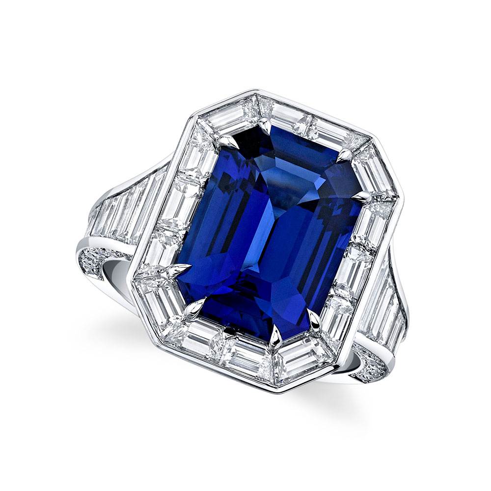 7.13ct EC Ceylon SA (Heated) GIA BG 5.17ctw RB 0.77ctw Set in Platinum Please inquire for price.