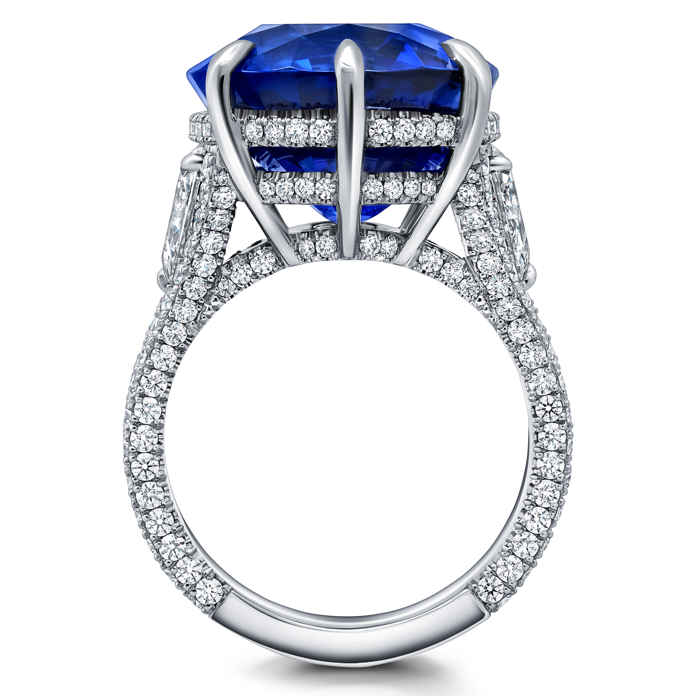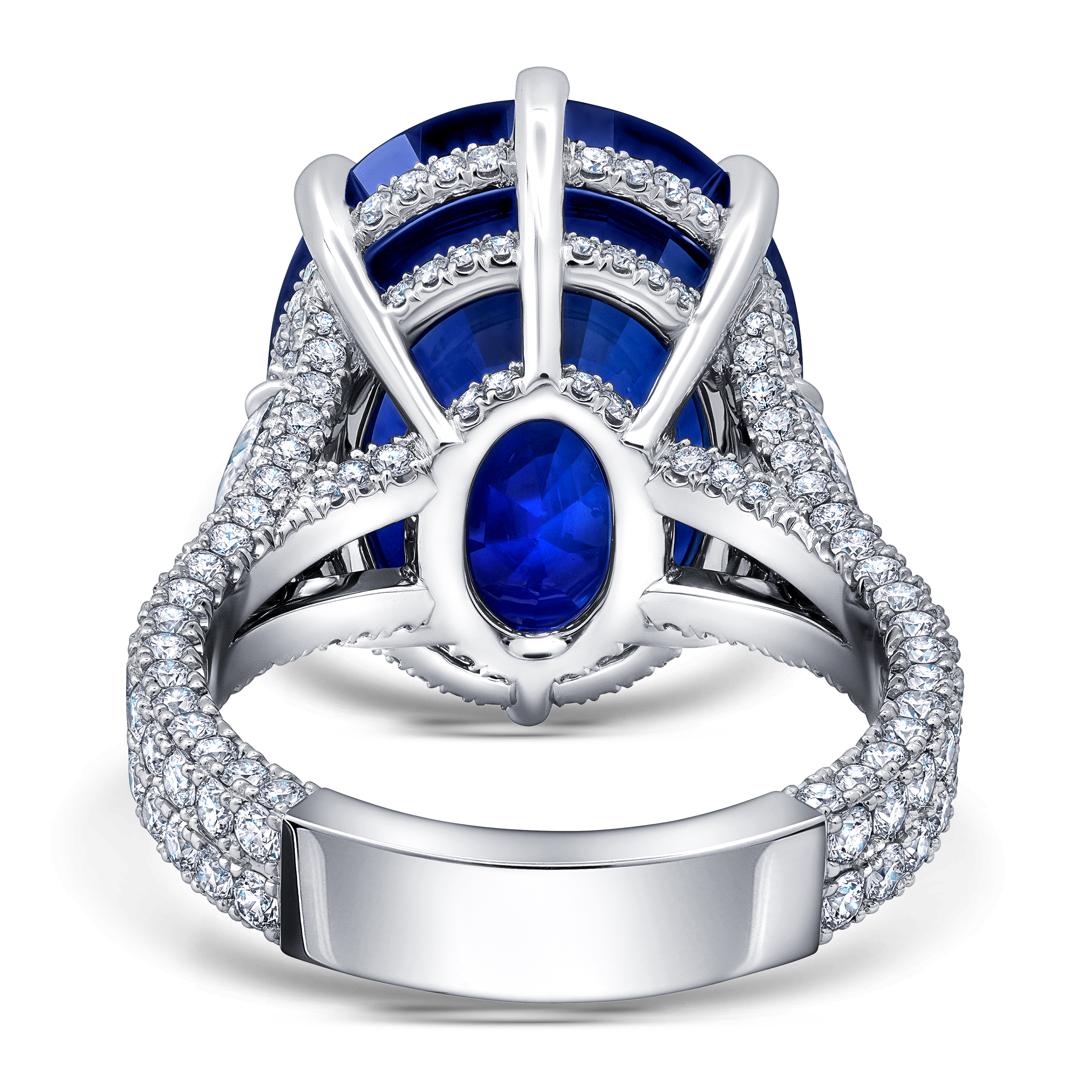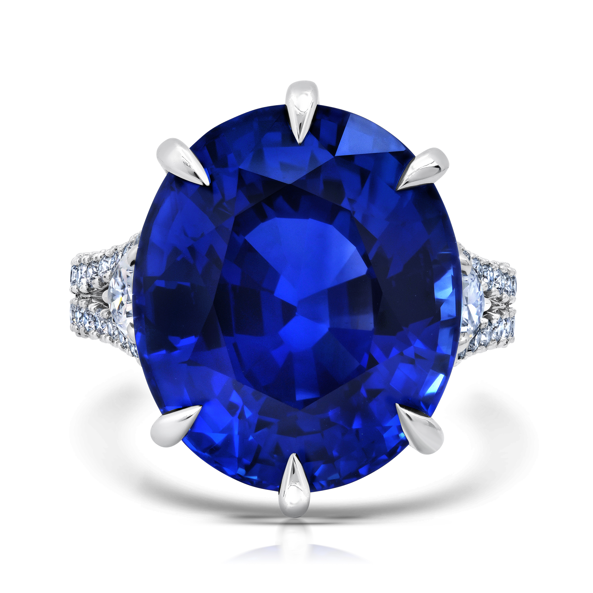 OV 20.14ct Ceylon Blue Sapphire (H) GRS PS 0.50ct D VS1 GIA PS 0.50ct D VS1 GIA RB 1.74ctw Finger Size: 7.0 Made in Platinum Please inquire for price.
