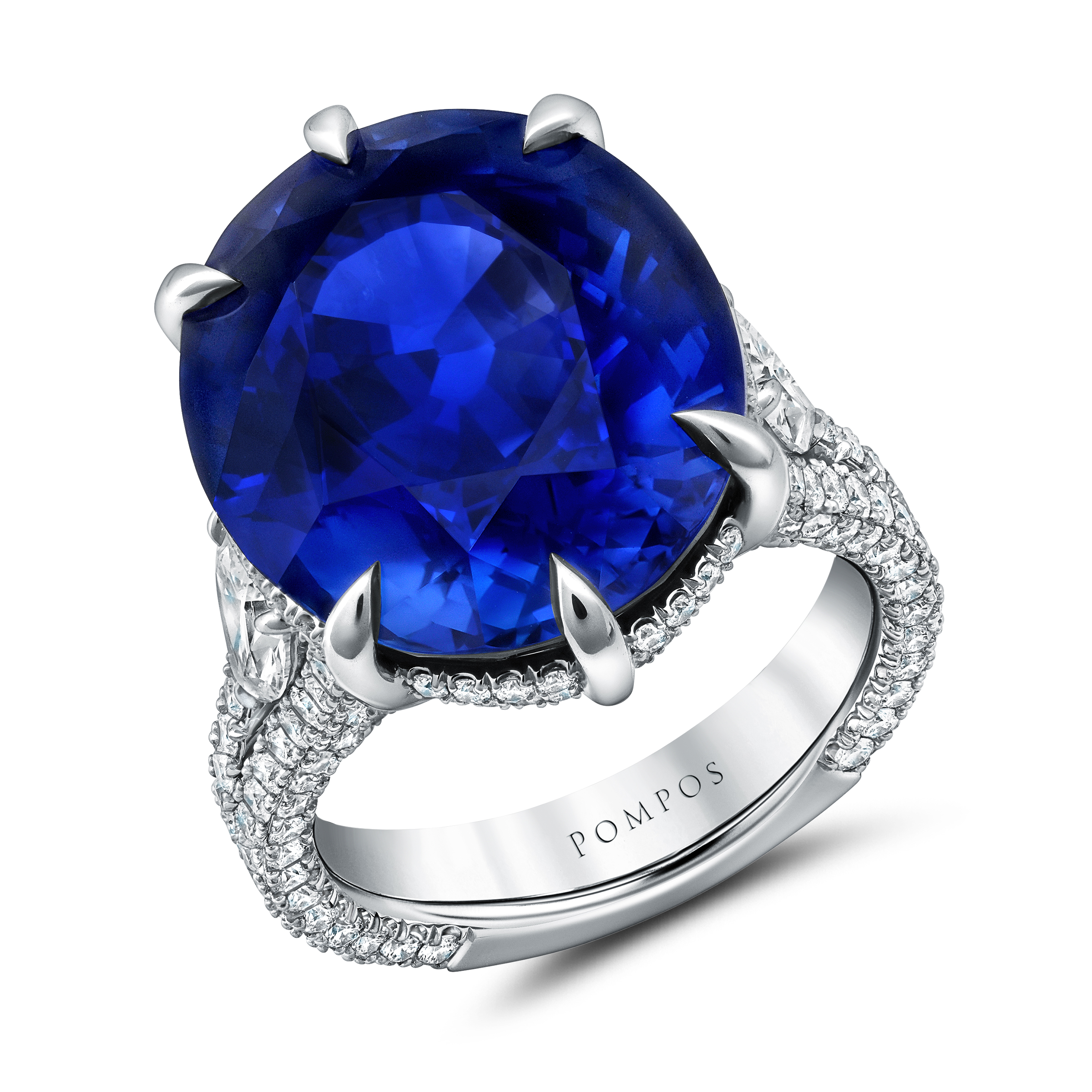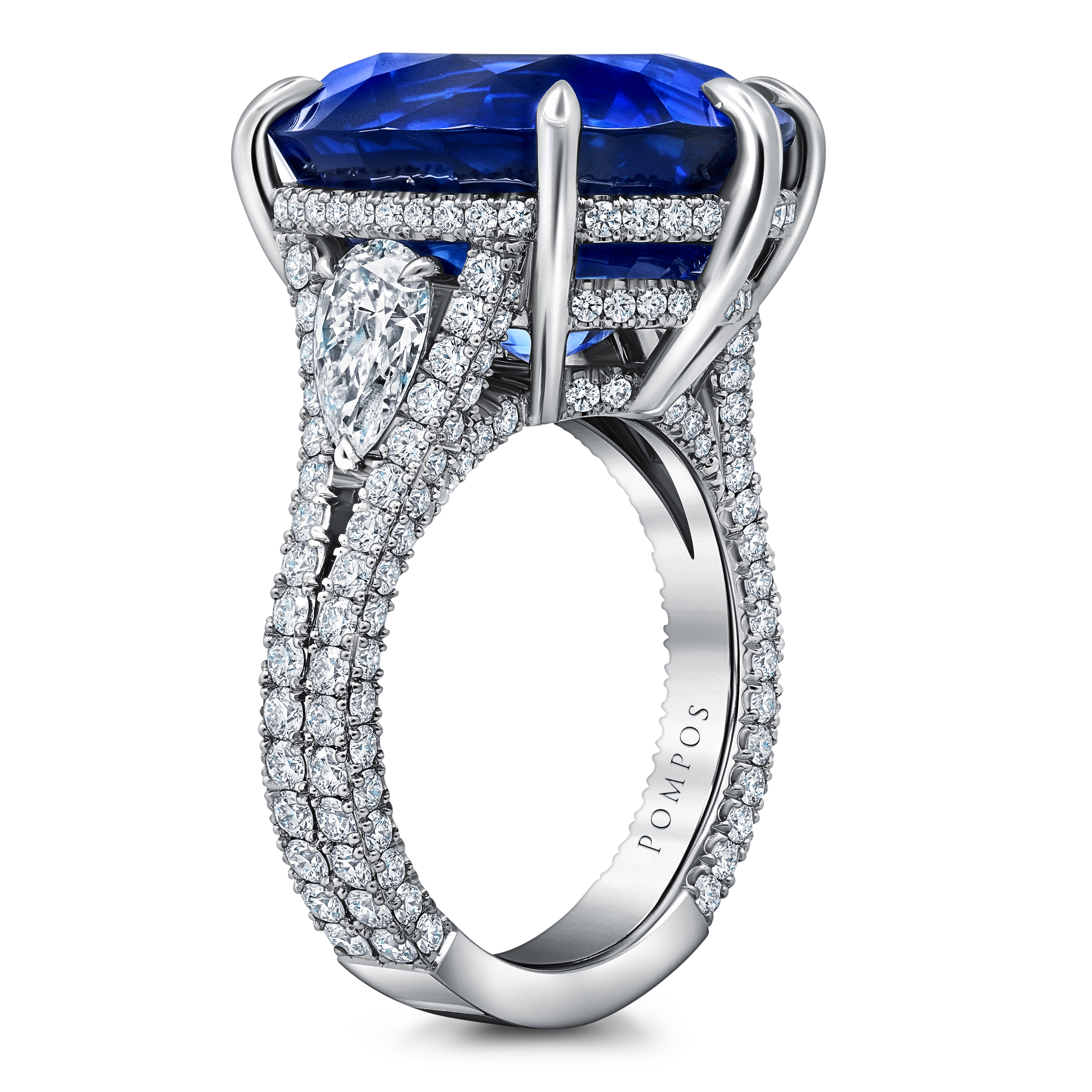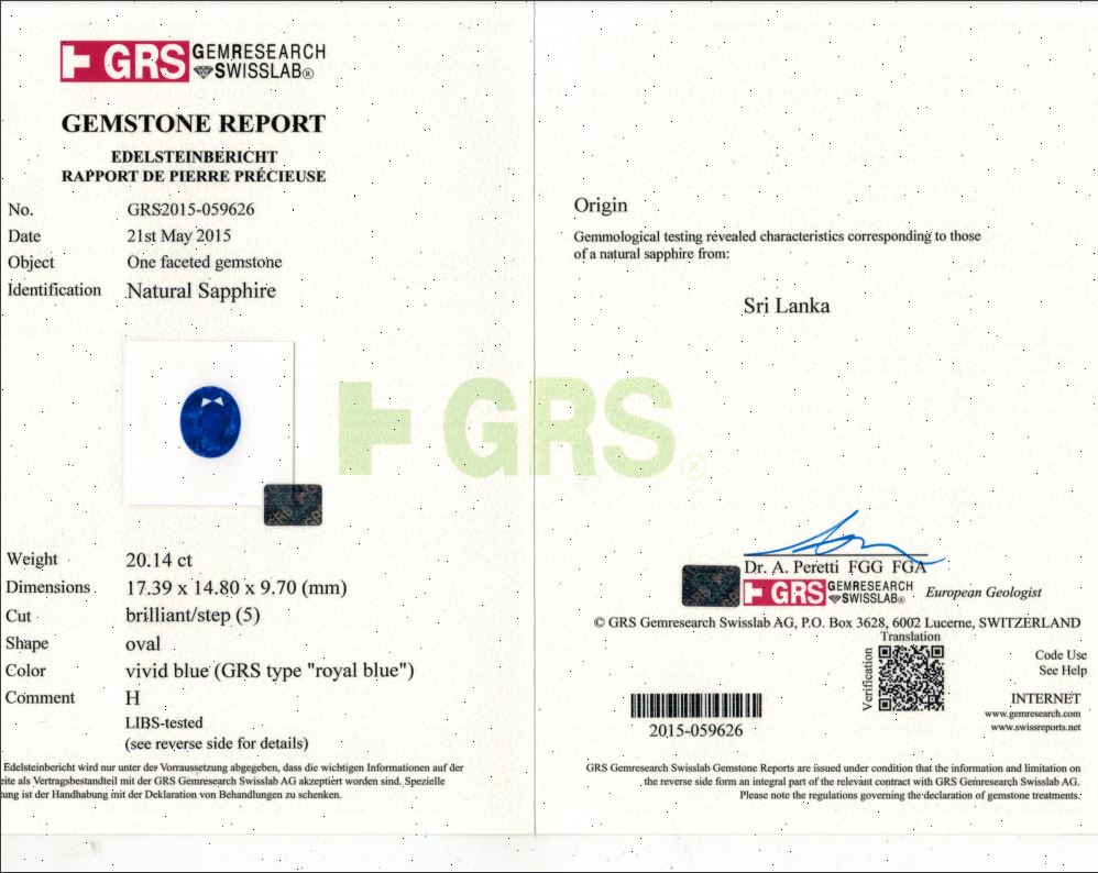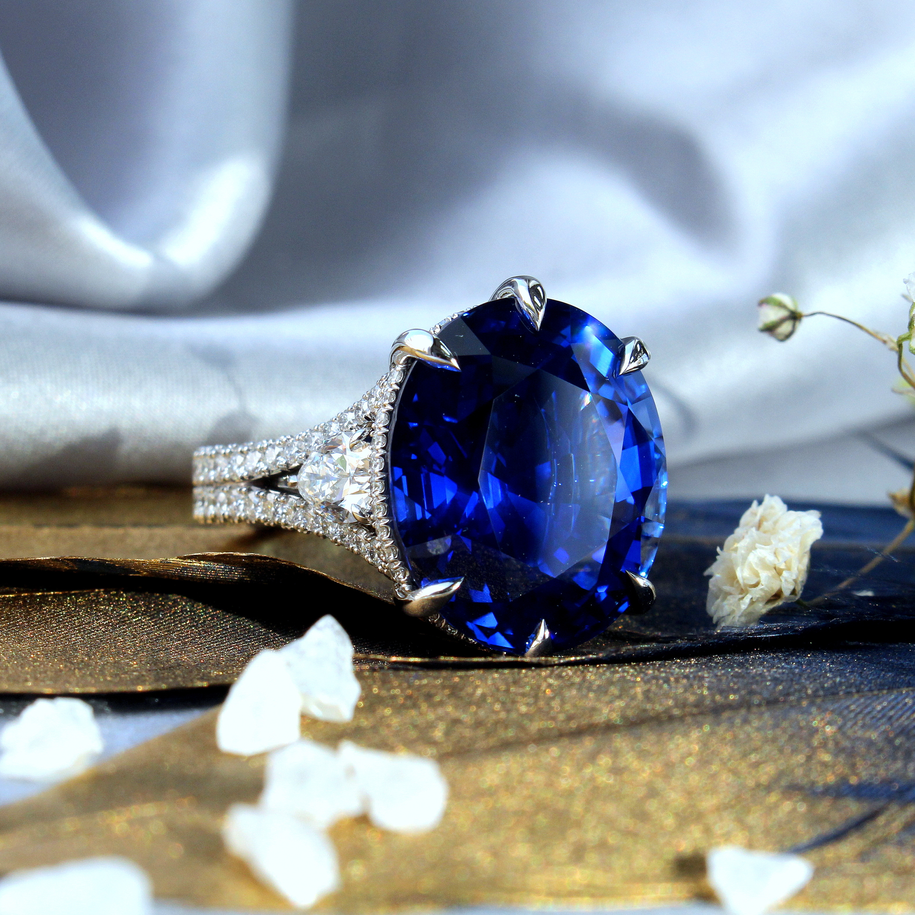 OV 20.14ct Ceylon Blue Sapphire (H) GRS PS 0.50ct D VS1 GIA PS 0.50ct D VS1 GIA RB 1.74ctw Finger Size: 7.0 Made in Platinum Please inquire for price.